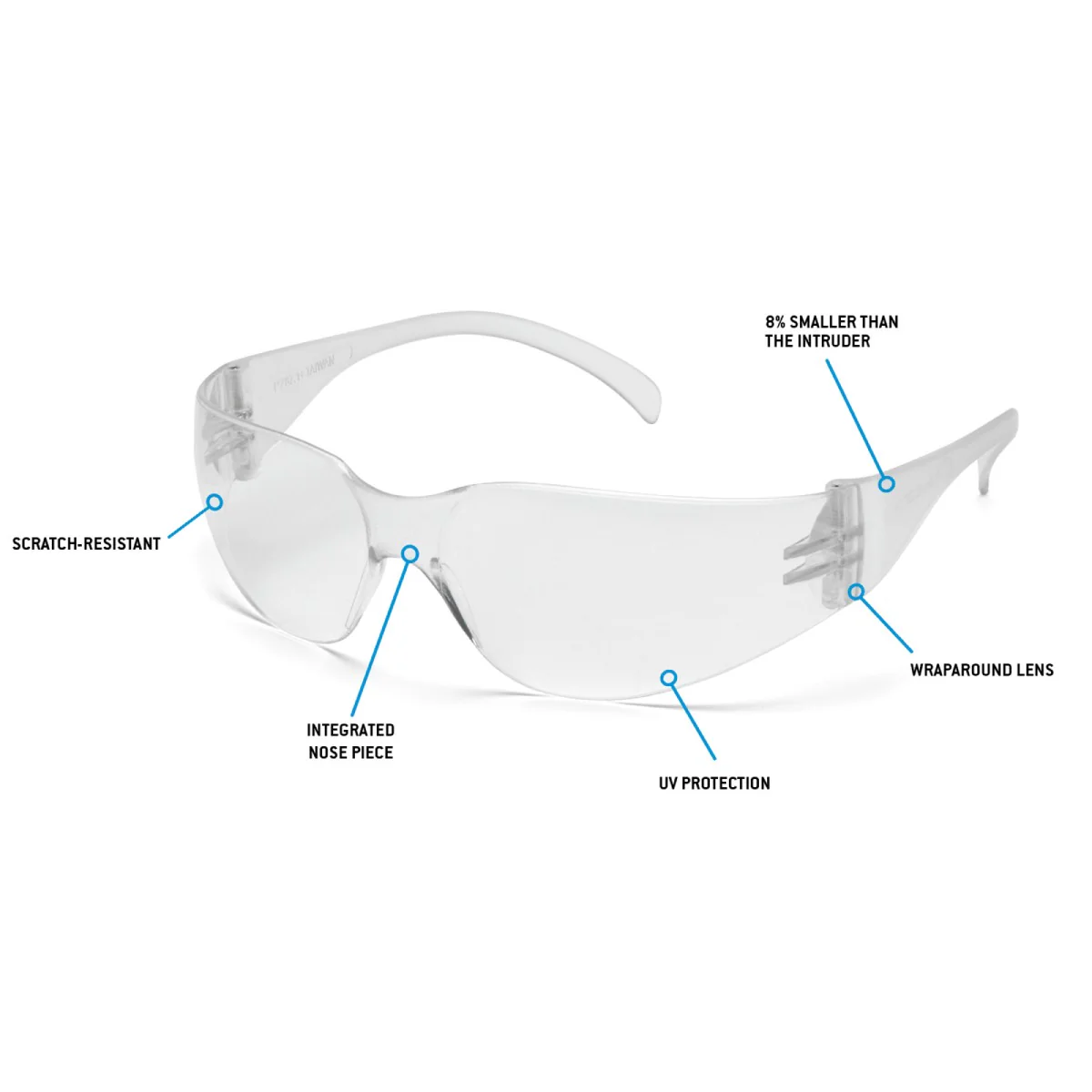 Rugged Blue Diablo Safety Glasses, Clear Lens, Clear Frame, 300 Pack